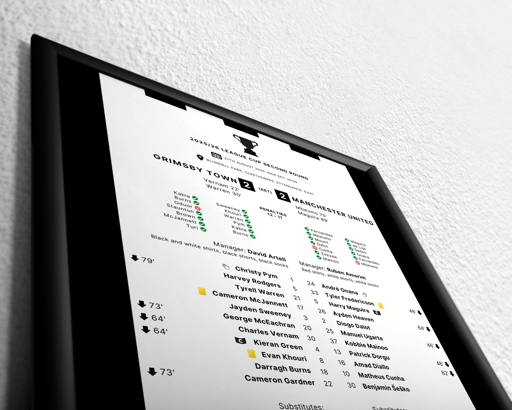 Goals from Charles Vernam and Tyrell Warren gave Grimsby a 2-0 lead before Bryan Mbeumo and Harry Maguire drew United level. Mbeumo would miss the decisive penalty, sparking wild celebrations at Blundell Park!